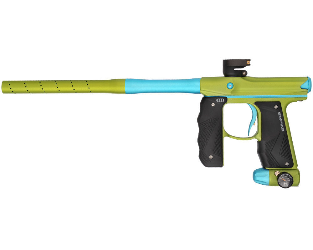 Ergonomics are important for paintball guns, and the Empire Mini GS brings its compact feel to the future by adding a rubber wrap-around foregrip with detailed spacings for fingers for secure grip and protection . Additionally, the marker uses through-grip air transfer which allows for no external hoses getting in the way during play! The marker's small size makes it an excellent choice for younger players really looking to step up their game at an early age.