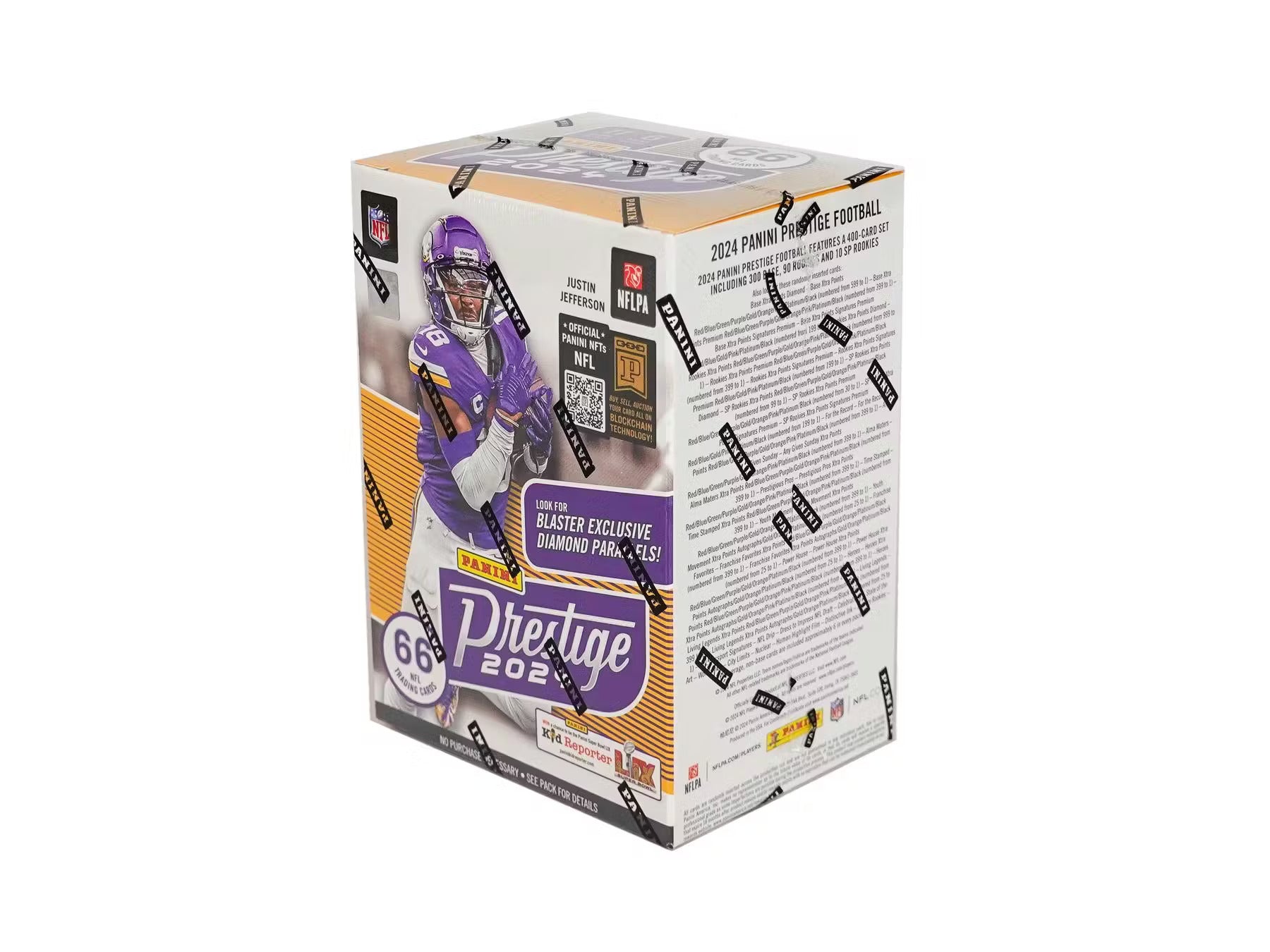 Prestige Football returns for 2024 with a massive 400-card base set, including 90 rookies and 10 SP rookies; look for a bevy of collectible retail parallels.