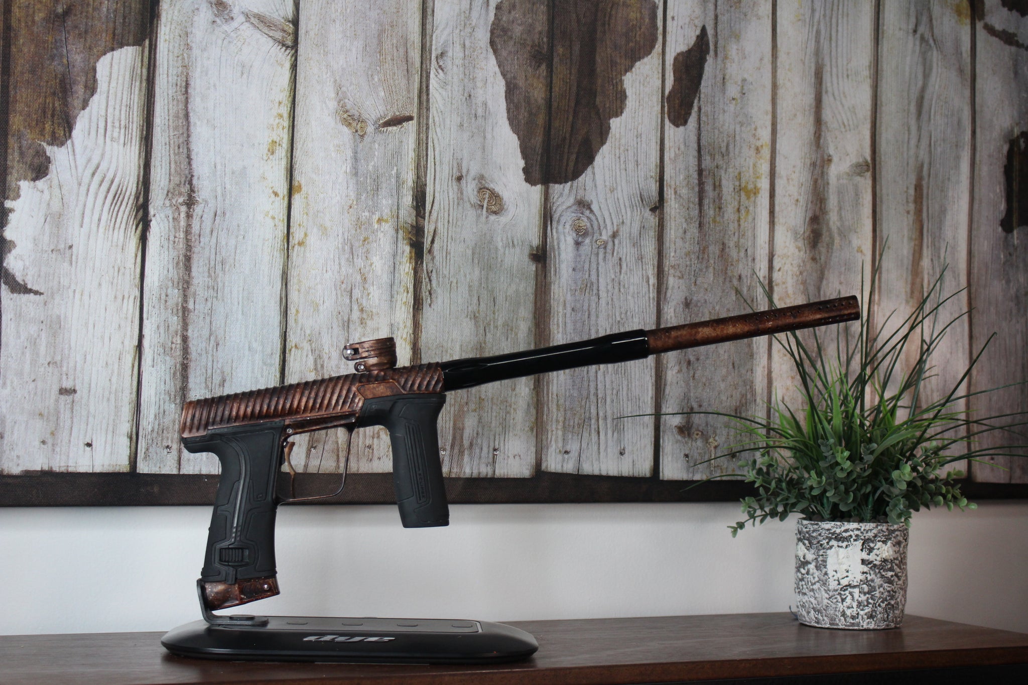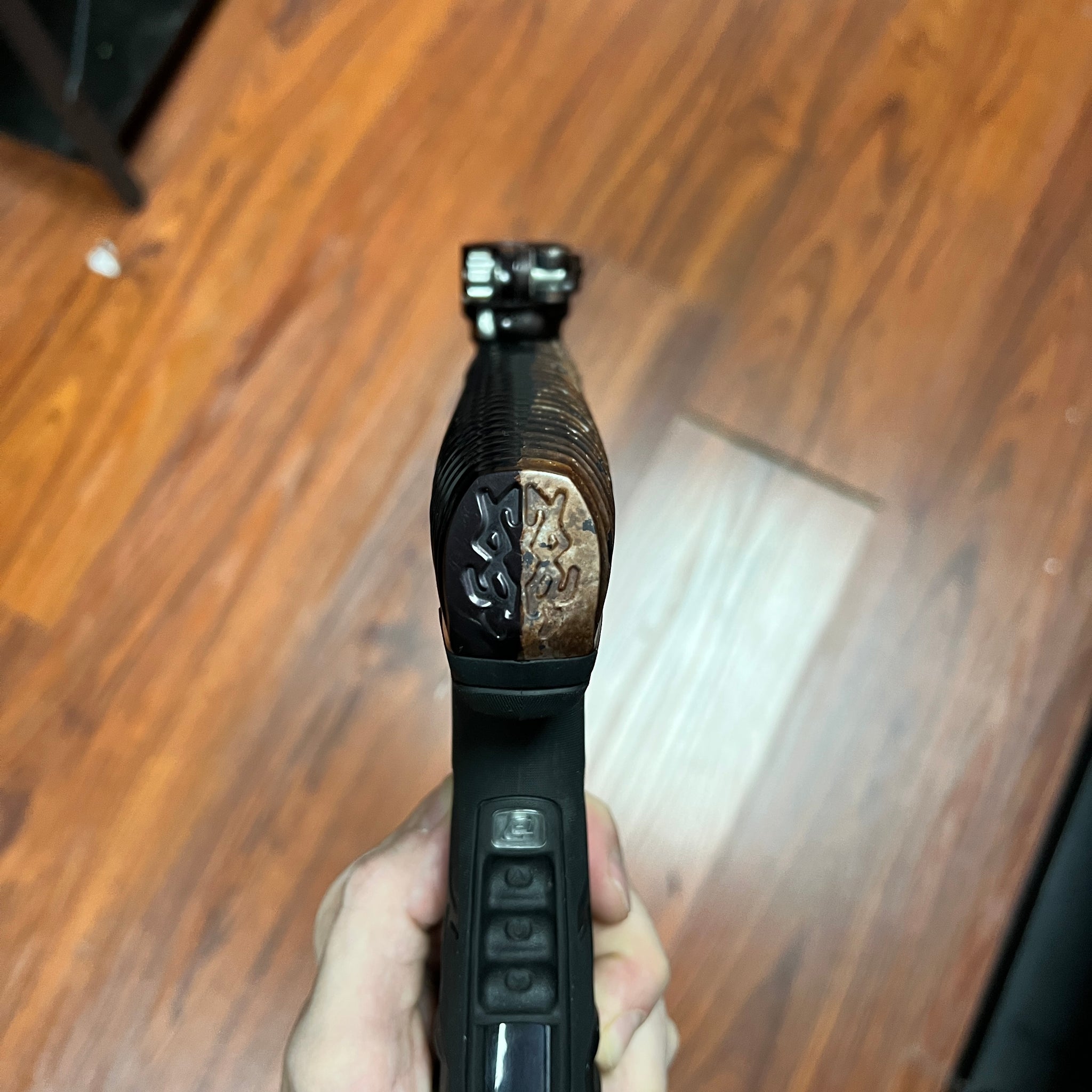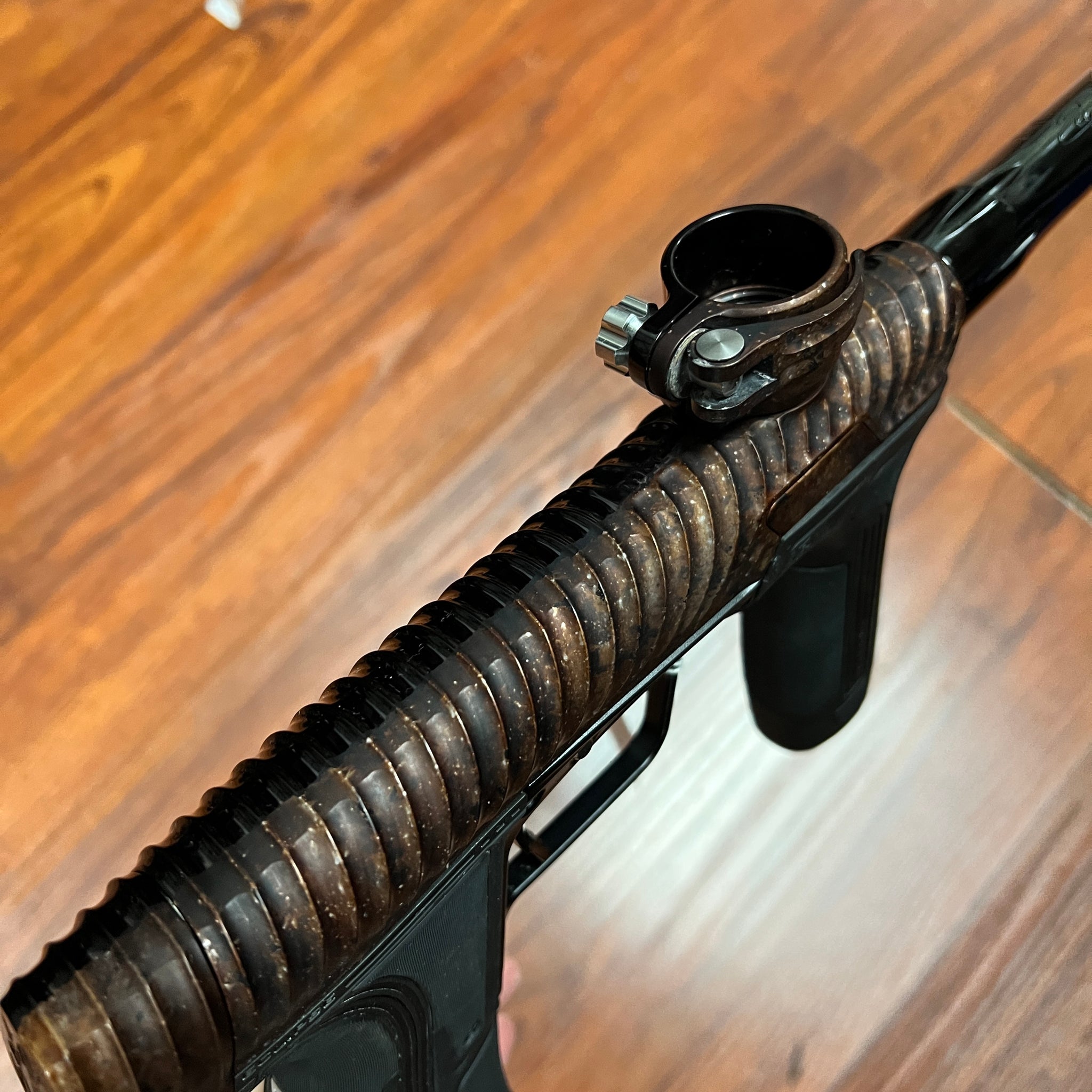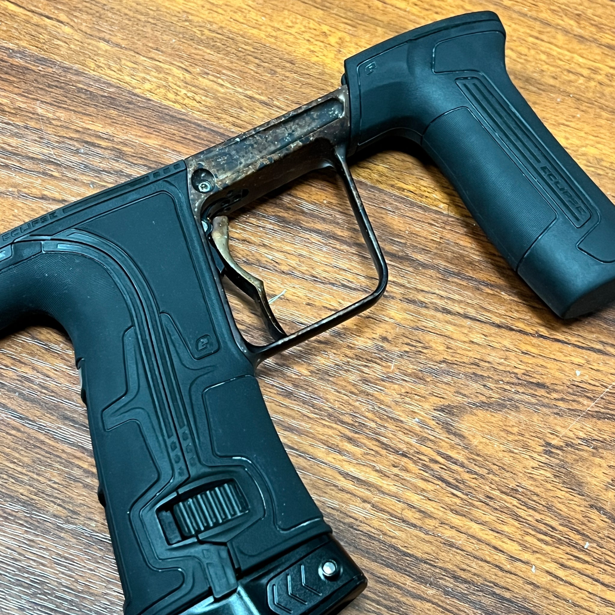 Extras: Case, (2) PWR inserts, DYE UL-I barrel (ano-matched tip, installed), blade trigger (ano matched), mechanical conversion w/ Infamous haptic single trigger/grips/ASA (installed), electric frame w/ Infamous deuce trigger/grips/ASA, spares, allens, grease, manual, COA ("Custom")